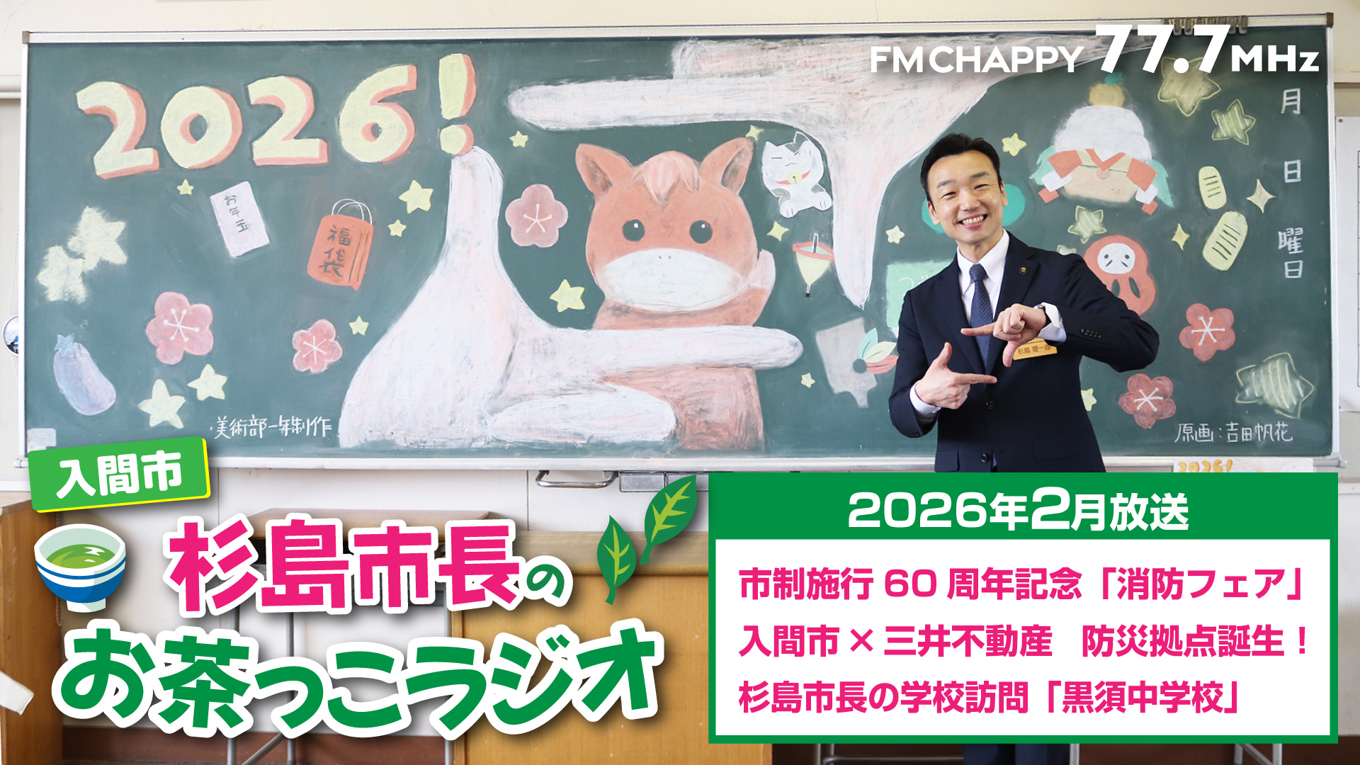 | 0:00 | オープニング 新年を迎えて 今年は財政再建・未来投資・教育改革を柱に「未来共創のまちづくり」に向けて全身全霊を傾けていきます。今年もたくさんの市民の皆さんがあらゆる分野で活躍していただきたいと思っています。 |